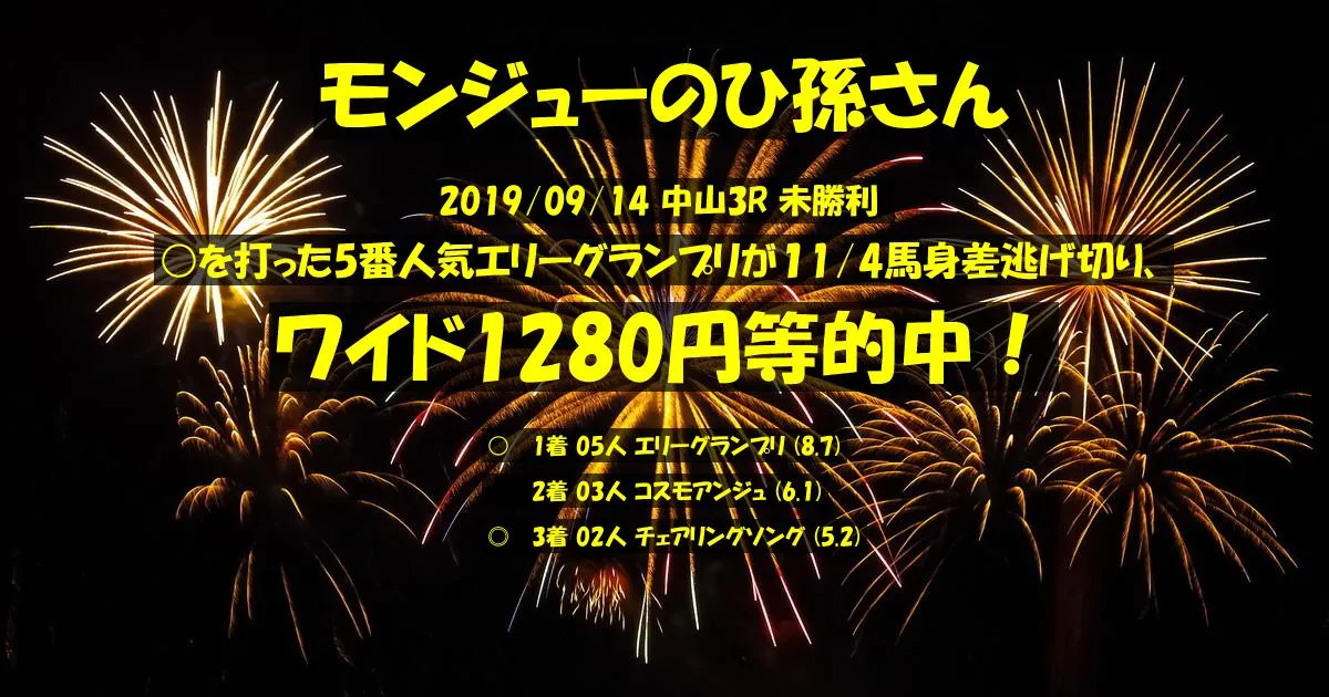 未勝利 中山3R 2019/09/14 | レース結果/みんなの予想結果/最新ニュース | POG-INFO