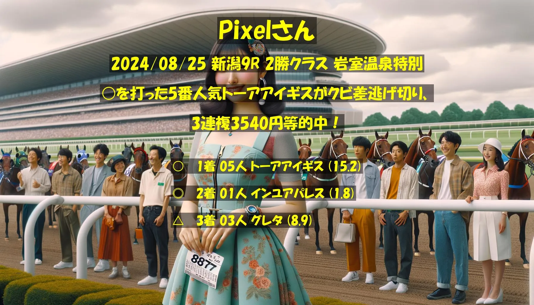 🎯Pixelさん🎯 新潟9R 2勝クラス 岩室温泉特別、3連複3540円等的中!(345%)